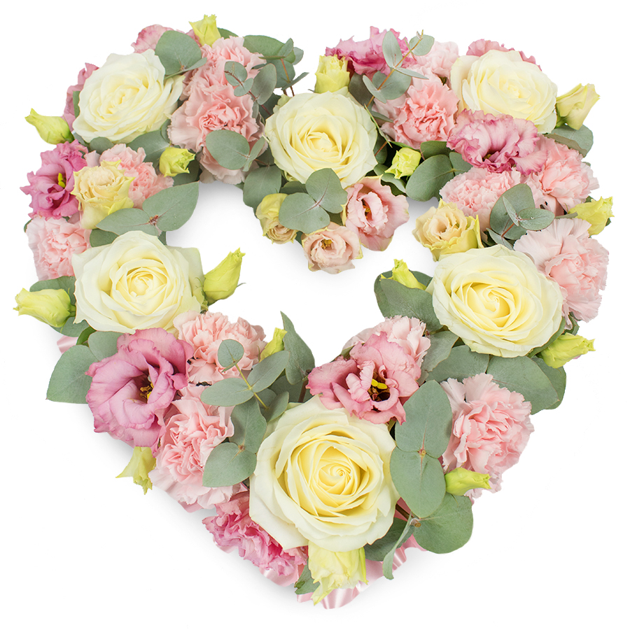 Our Elegant Open Heart Bouquet is a perfect tribute, thoughtfully arranged with white roses, pink carnations, pink lisianthus, and eucalyptus leaves. This bouquet embodies beauty and sincerity, making it an ideal gift to express your heartfelt sentiments.